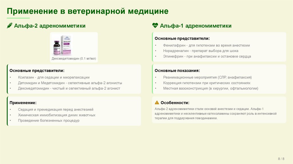 Применение в ветеринарной медицинеАльфа-2 адреномиметики