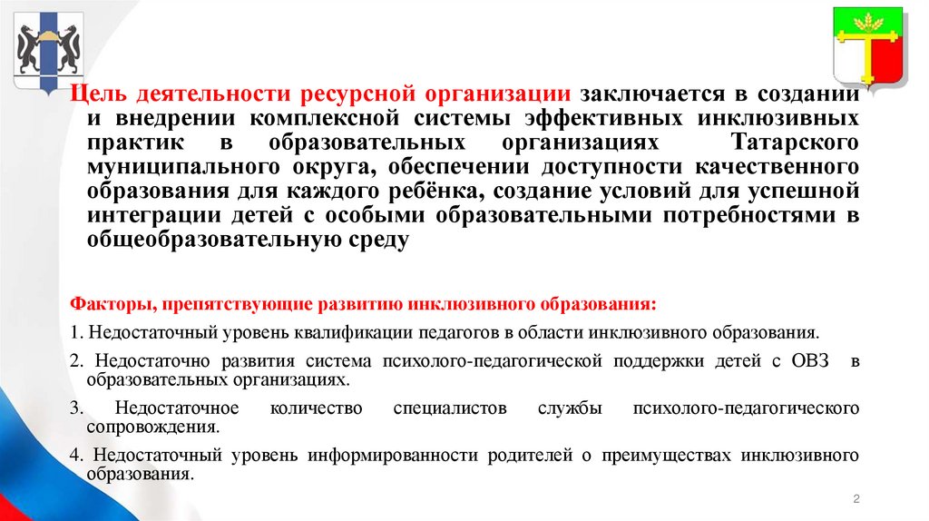 Цель деятельности ресурсной организации заключается в созданиии внедрении комплексной системы эффективных инклюзивных