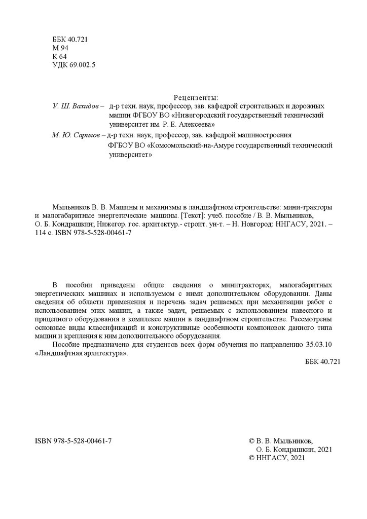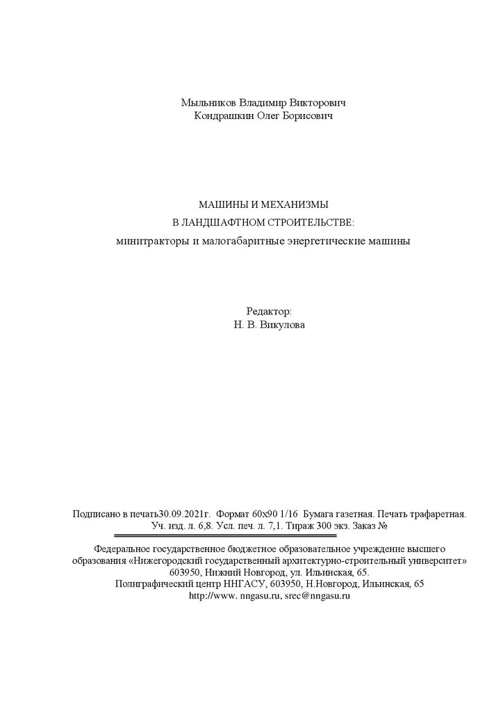 Мыльников В. В. Машины и механизмы в ландшафтном строительстве: мини-тракторы