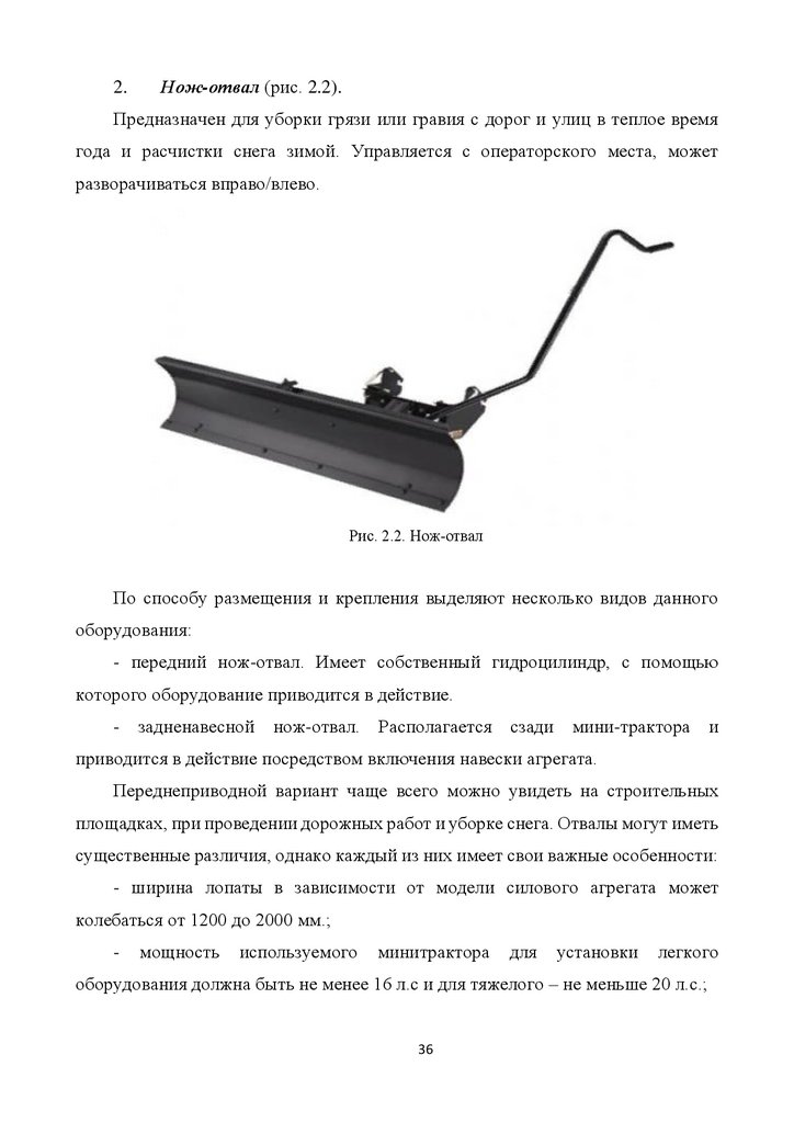 используемого в виде дополнительного оборудования на минитракторе, можно