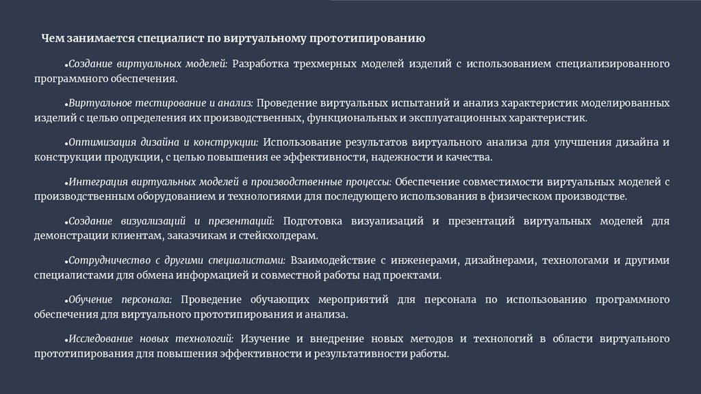 Чем занимается специалист по виртуальному прототипированию●Создание