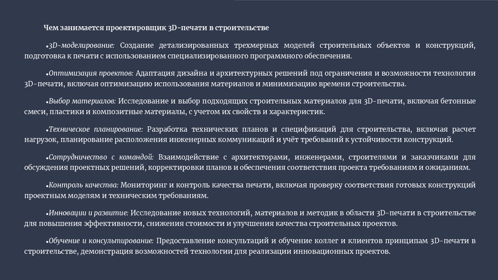3D-печати, включая оптимизацию использования материалов и минимизацию времени строительства.