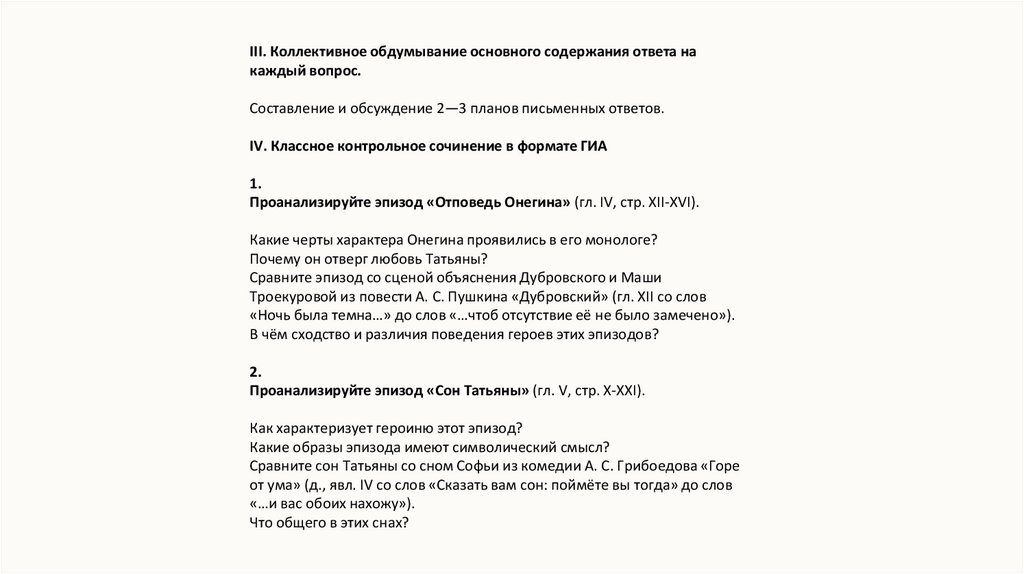 III. Коллективное обдумывание основного содержания ответа накаждый вопрос.