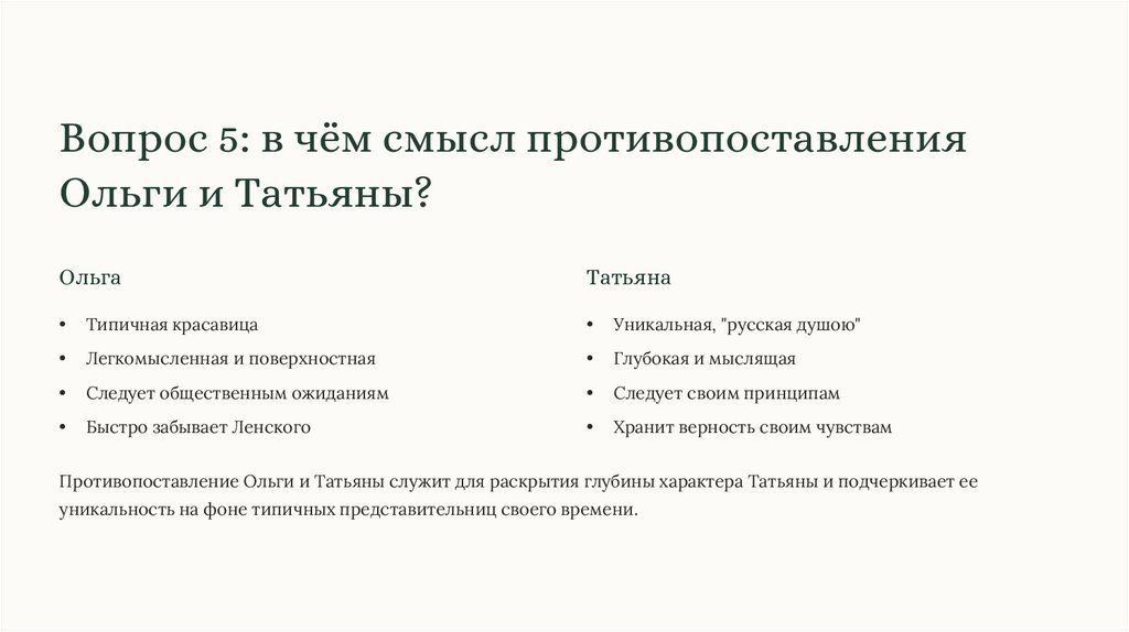 Вопрос 5: в чём смысл противопоставленияОльги и Татьяны?