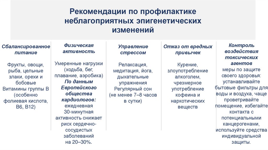 Рекомендации по профилактикенеблагоприятных эпигенетических