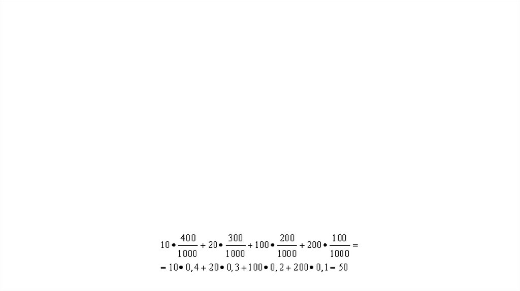 Пример 1. Организована беспроигрышная лотерея. Имеется 1000 выигрышей, из них 400 по 10 руб.300 - по 20 руб. 200 - по 100 руб. и 100 - по 200 руб. Каков средний размер выигрыша для купившего
