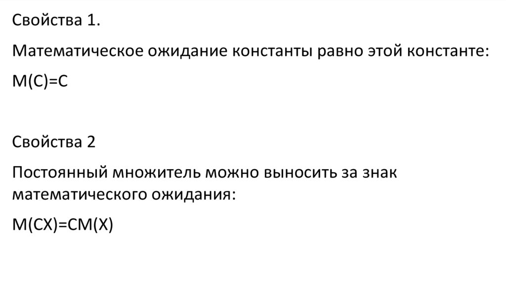Свойства 1.Математическое ожидание константы равно этой константе: