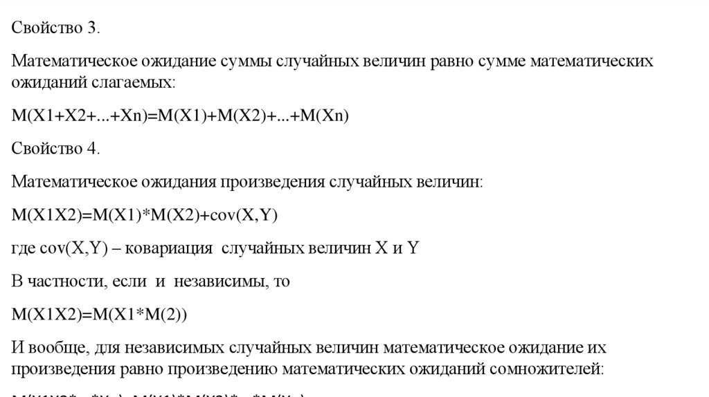 Свойство 3.Математическое ожидание суммы случайных величин равно сумме математических