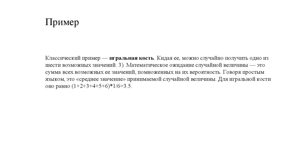 языком, это «среднее значение» принимаемой случайной величины. Для игральной кости