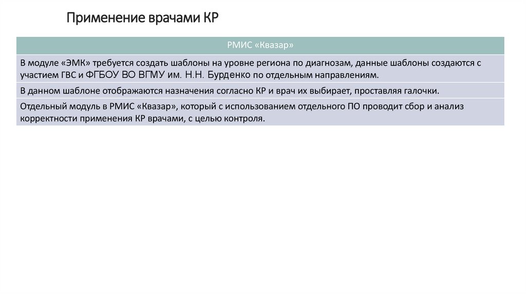 Отдельный модуль в РМИС «Квазар», который с использованием отдельного ПО проводит сбор и анализ