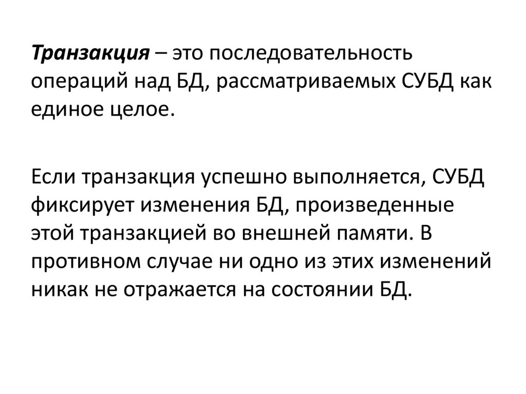 Транзакция – это последовательностьопераций над БД, рассматриваемых СУБД как