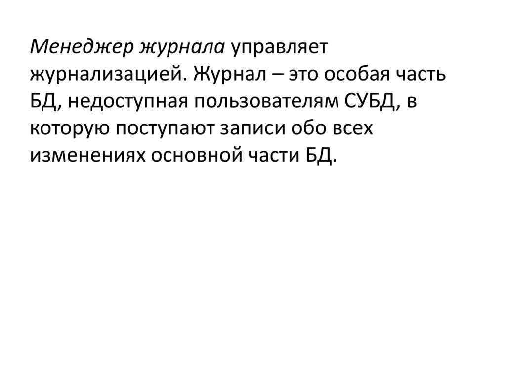 Менеджер журнала управляетжурнализацией. Журнал – это особая часть