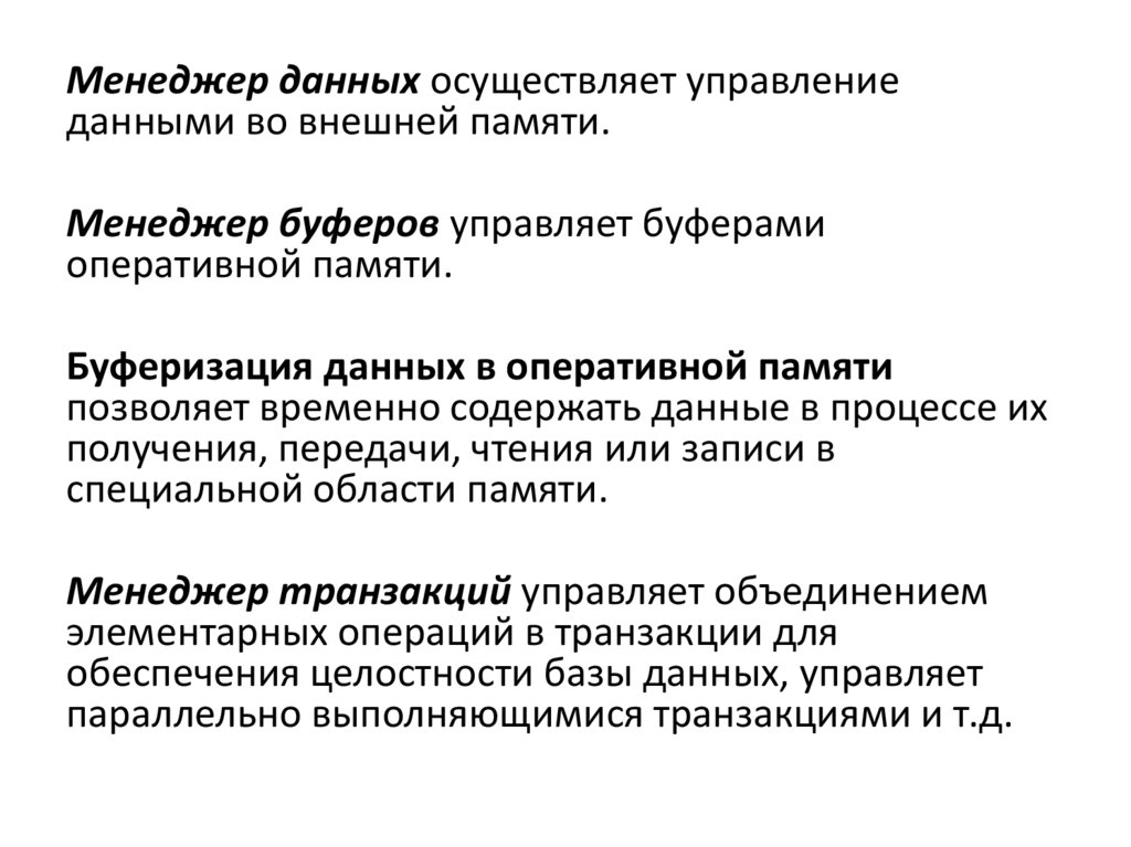 Менеджер данных осуществляет управлениеданными во внешней памяти.