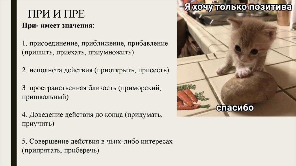 ПРИ И ПРЕПри- имеет значения: