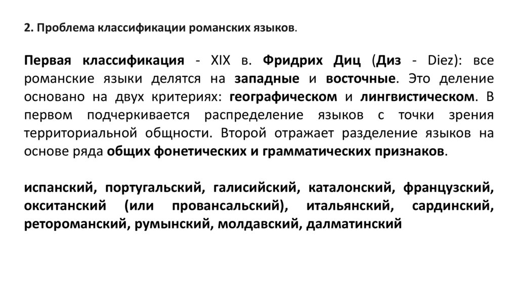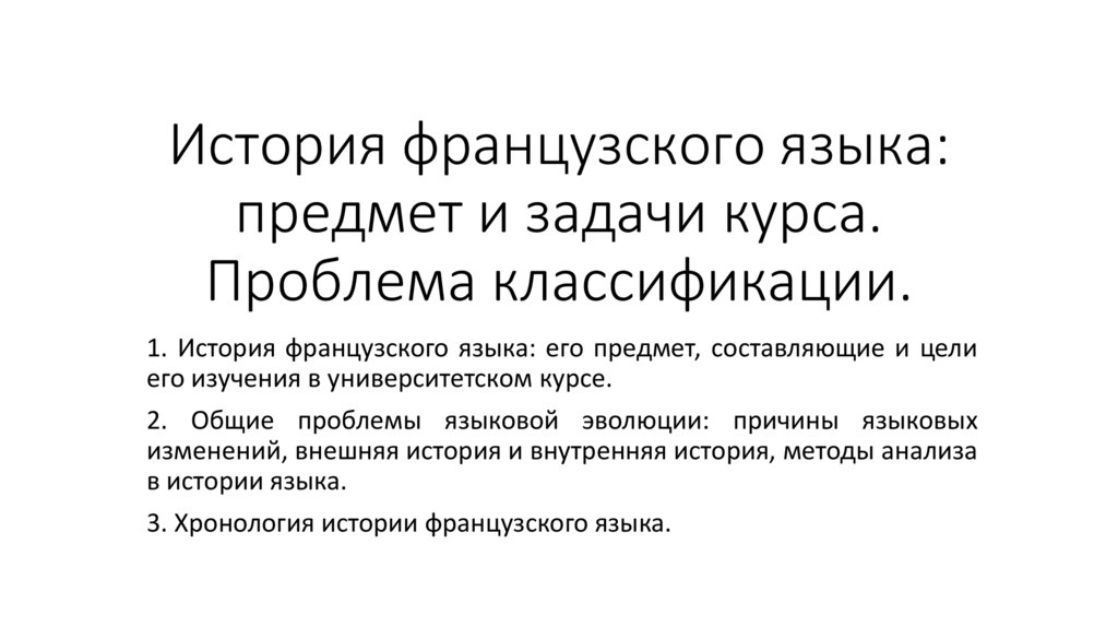 1. История французского языка: предмет и задачи курса. Проблема классификации.
