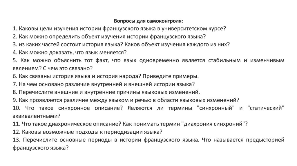 1. История французского языка: его предмет, составляющие и целиего изучения в университетском курсе.