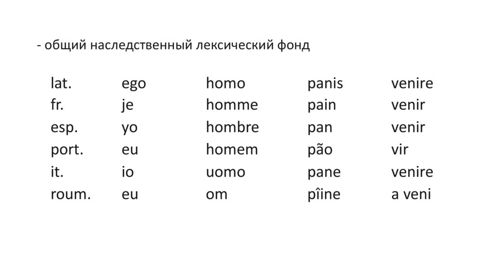 латыни и продолжающие сохранять в своем развитии: лексики,