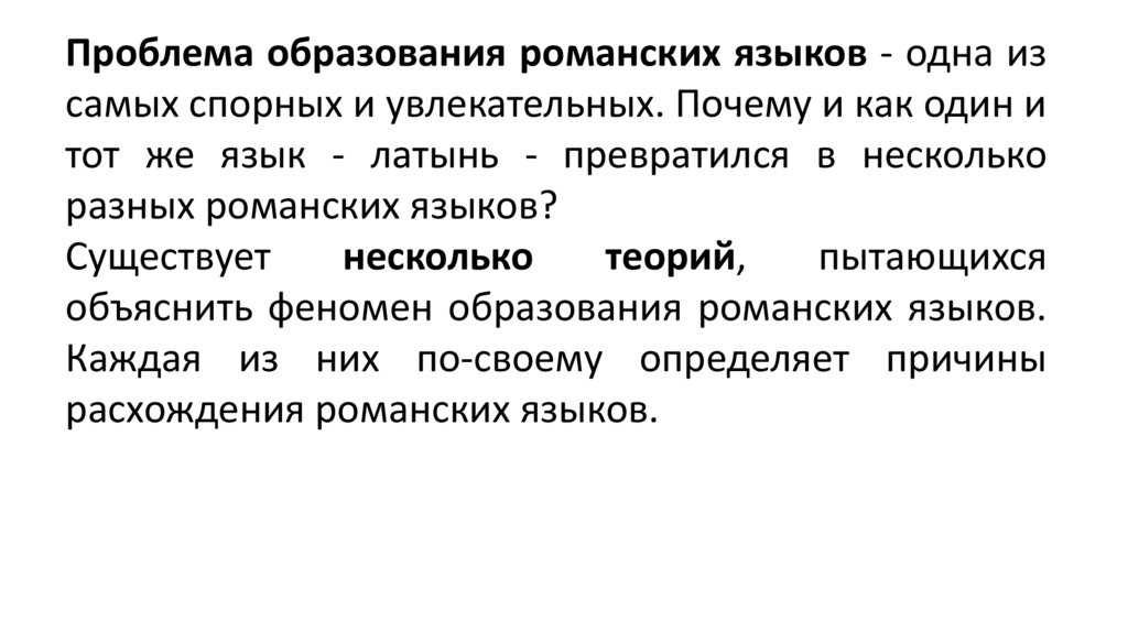 Проблема образования романских языков - одна изсамых спорных и увлекательных. Почему и как один и