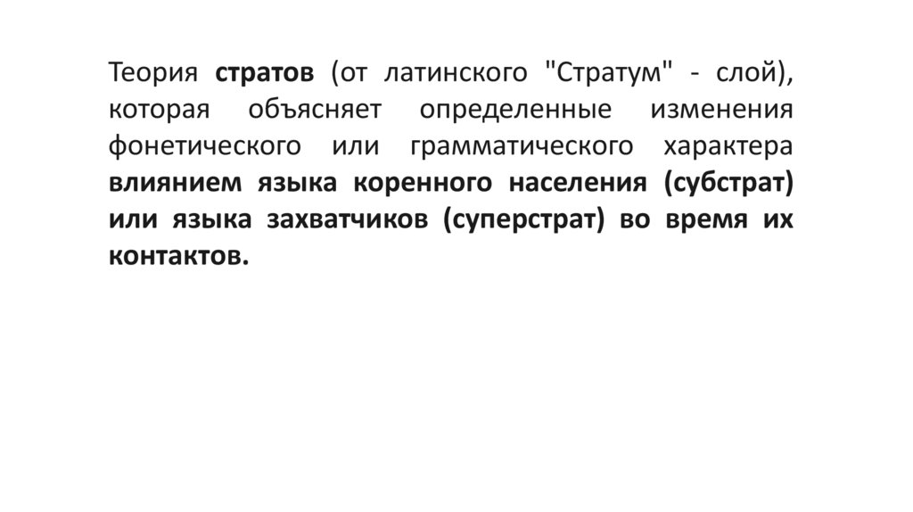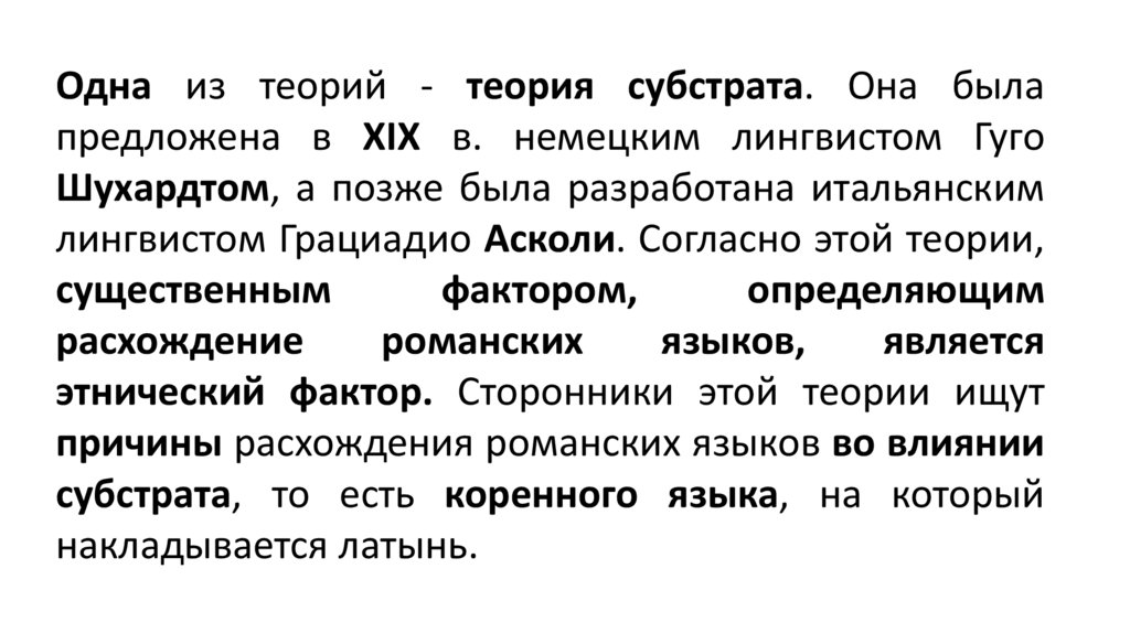Одна из теорий - теория субстрата. Она былапредложена в XIX в. немецким лингвистом Гуго