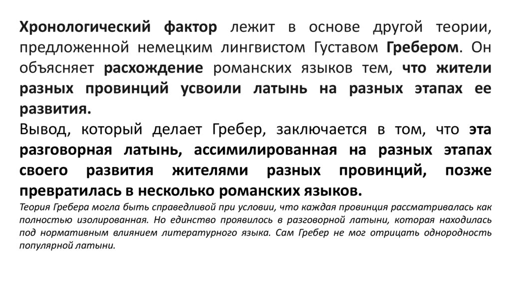 Хронологический фактор лежит в основе другой теории,предложенной немецким лингвистом Густавом Гребером. Он