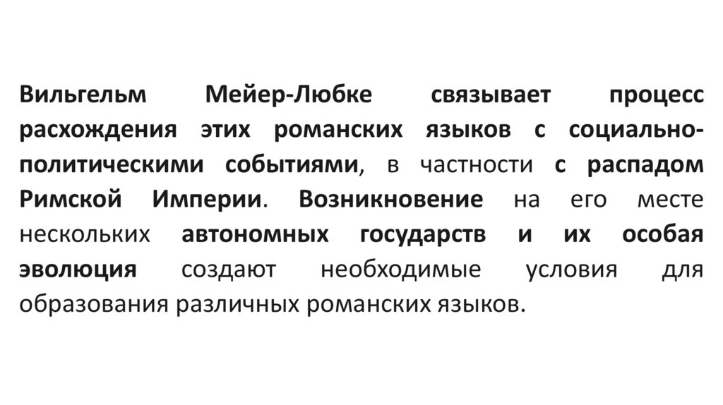 расхождения этих романских языков с социальнополитическими событиями, в частности с распадом
