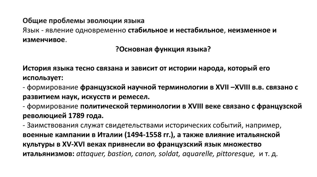 1. История языка — это изучение егоэволюции. Любой язык находится в