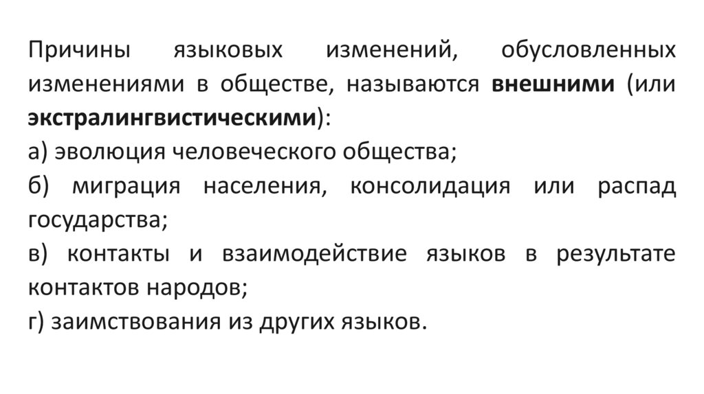 Язык как структура определяется внутренними причинами, изучениекоторых представляет внутреннюю историю языка: