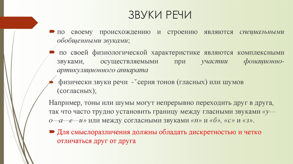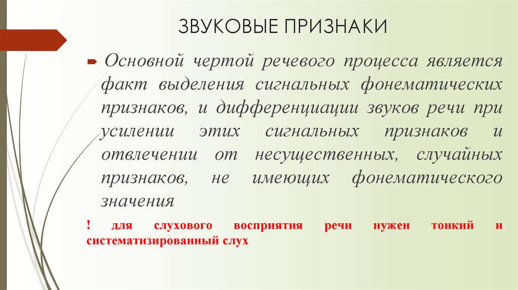 ЗВУКОВЫЕ ПРИЗНАКИОсновной чертой речевого процесса является