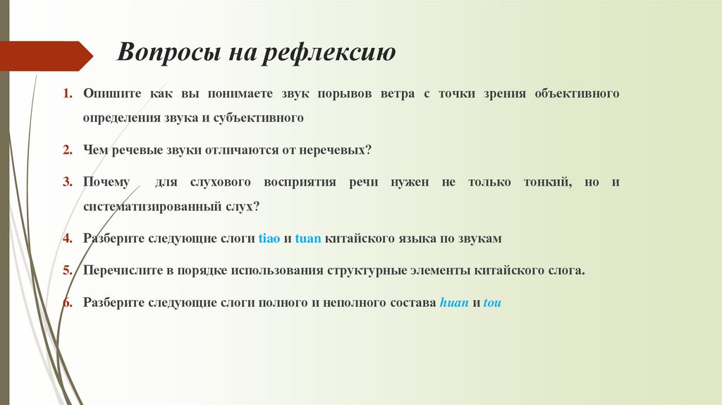 Вопросы на рефлексию1. Опишите как вы понимаете звук порывов ветра с точки зрения объективного