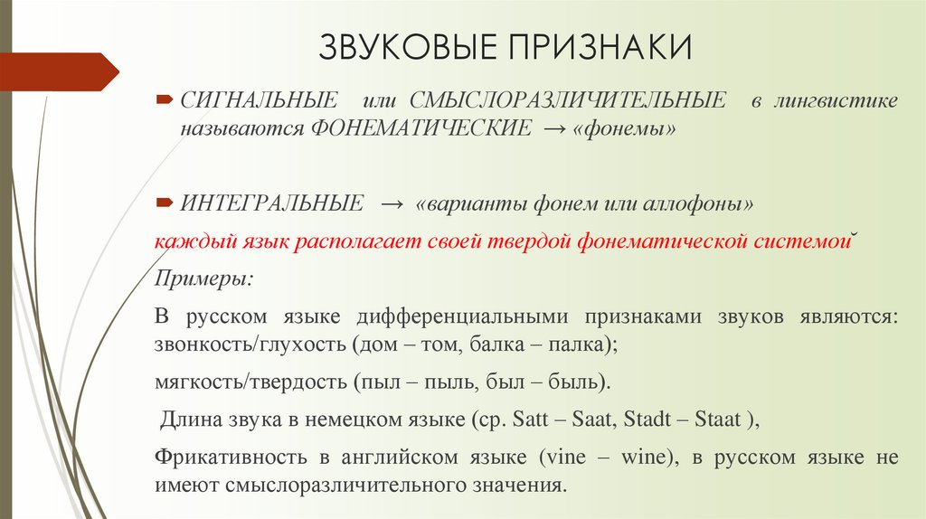 ЗВУКОВЫЕ ПРИЗНАКИСИГНАЛЬНЫЕ или СМЫСЛОРАЗЛИЧИТЕЛЬНЫЕ