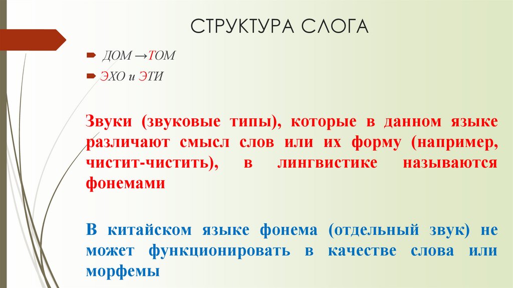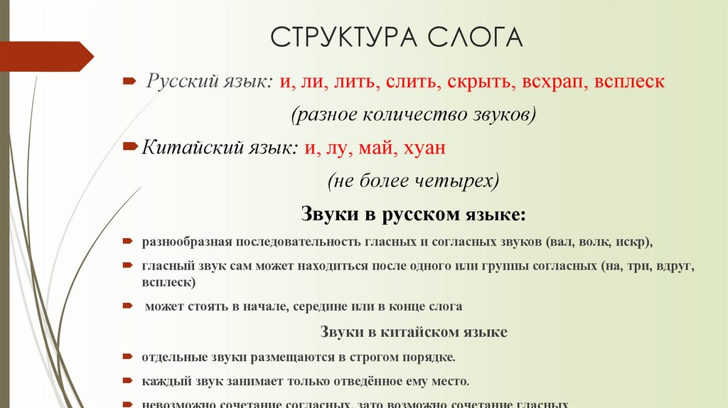СТРУКТУРА СЛОГАРусский язык: и, ли, лить, слить, скрыть, всхрап, всплеск