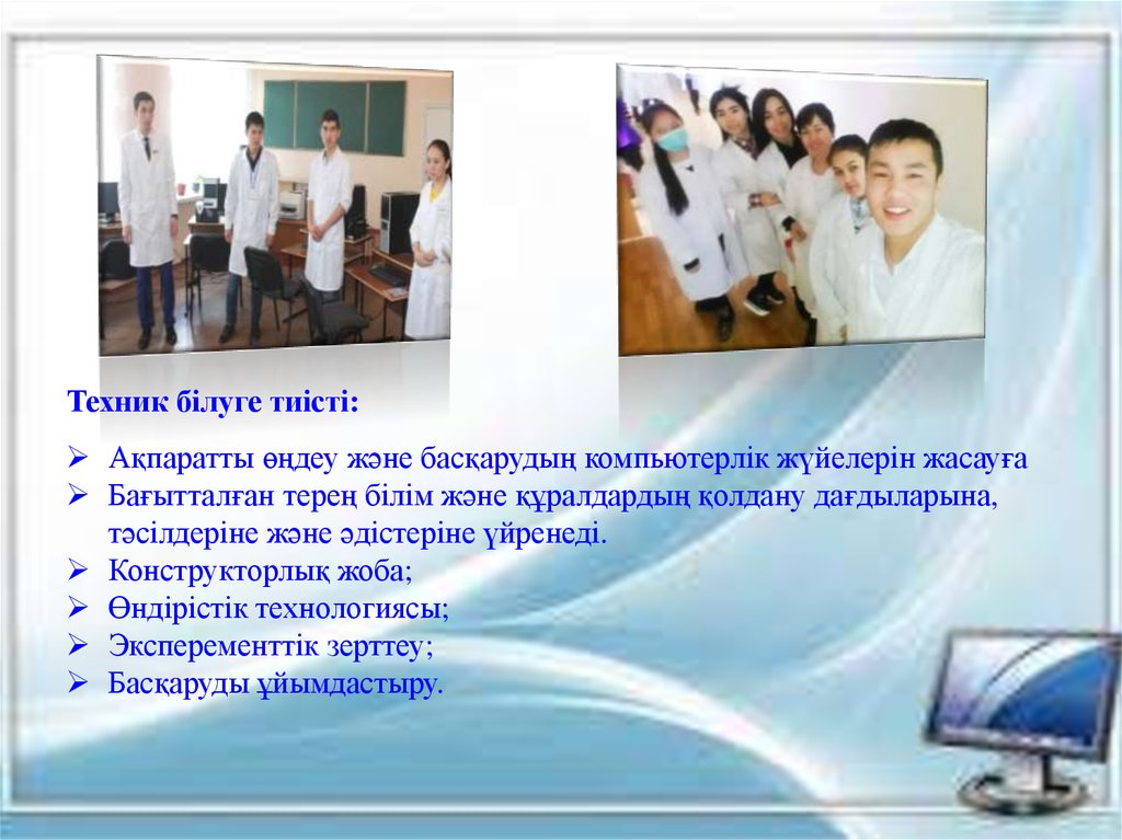 Техник білуге тиісті:Ақпаратты өңдеу және басқарудың компьютерлік жүйелерін жасауға