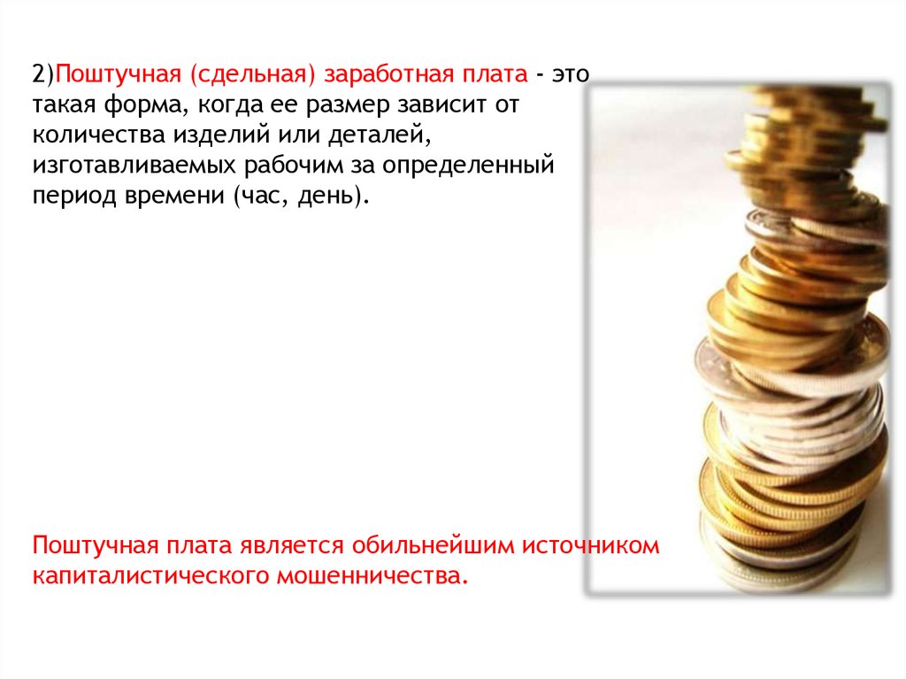 2)Поштучная (сдельная) заработная плата - этотакая форма, когда ее размер зависит от