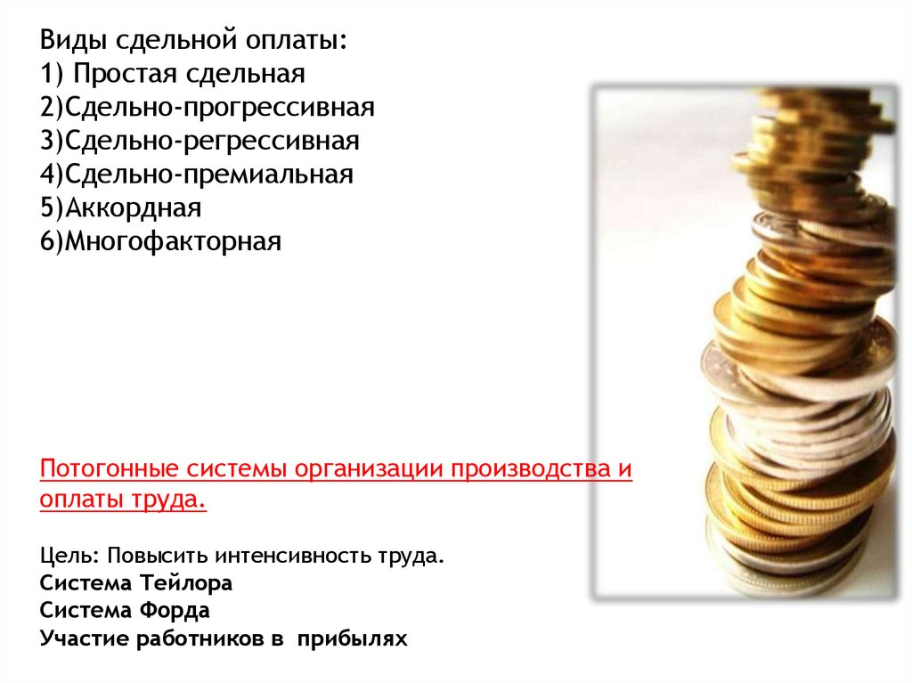 Виды сдельной оплаты:1) Простая сдельная
