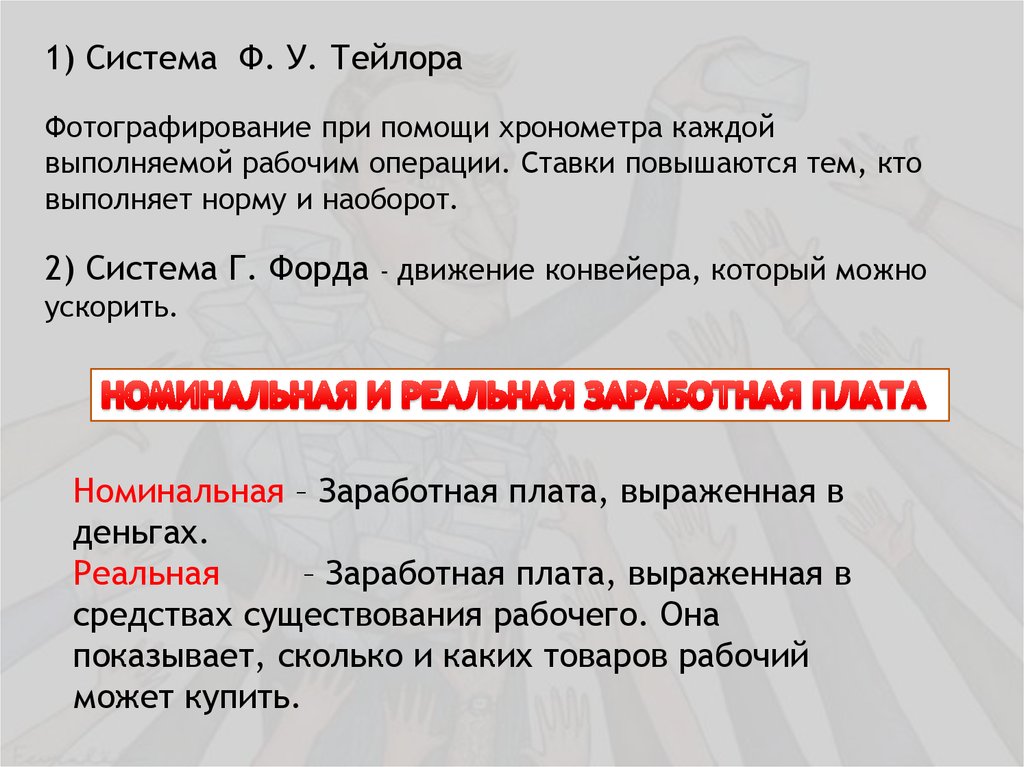2) Система Г. Форда - движение конвейера, который можно