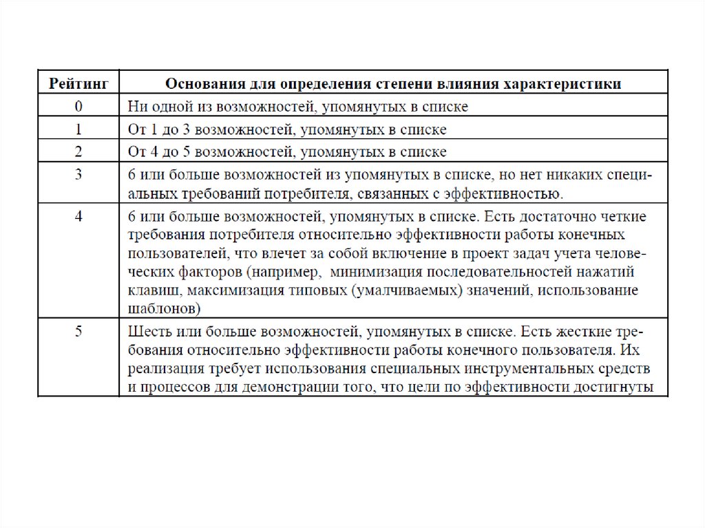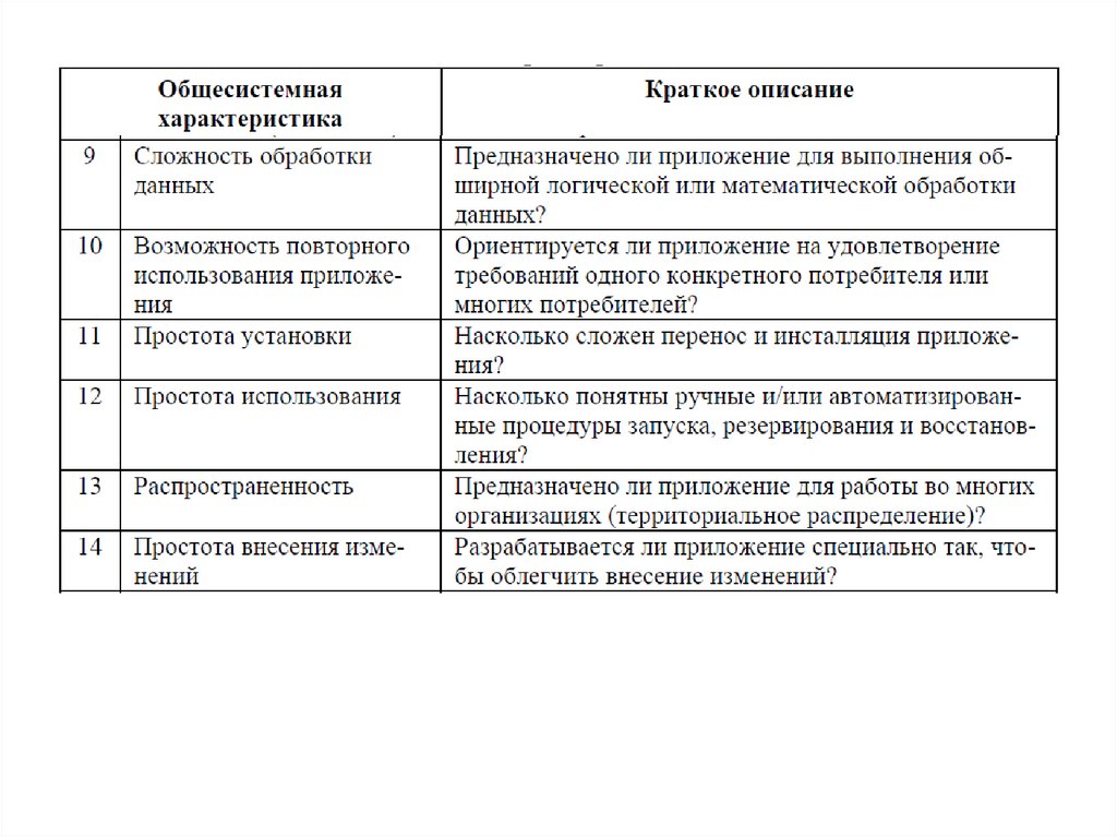 После того, как определена степень влияния всех 14общесистемных характеристик на размер и сложность