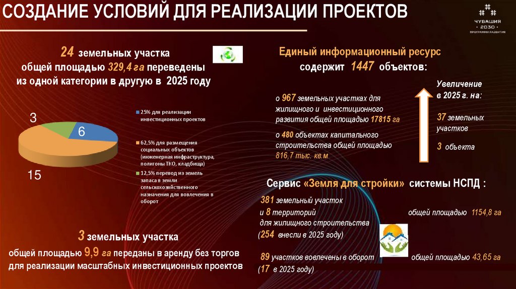 СОЗДАНИЕ УСЛОВИЙ ДЛЯ РЕАЛИЗАЦИИ ПРОЕКТОВ24 земельных участка