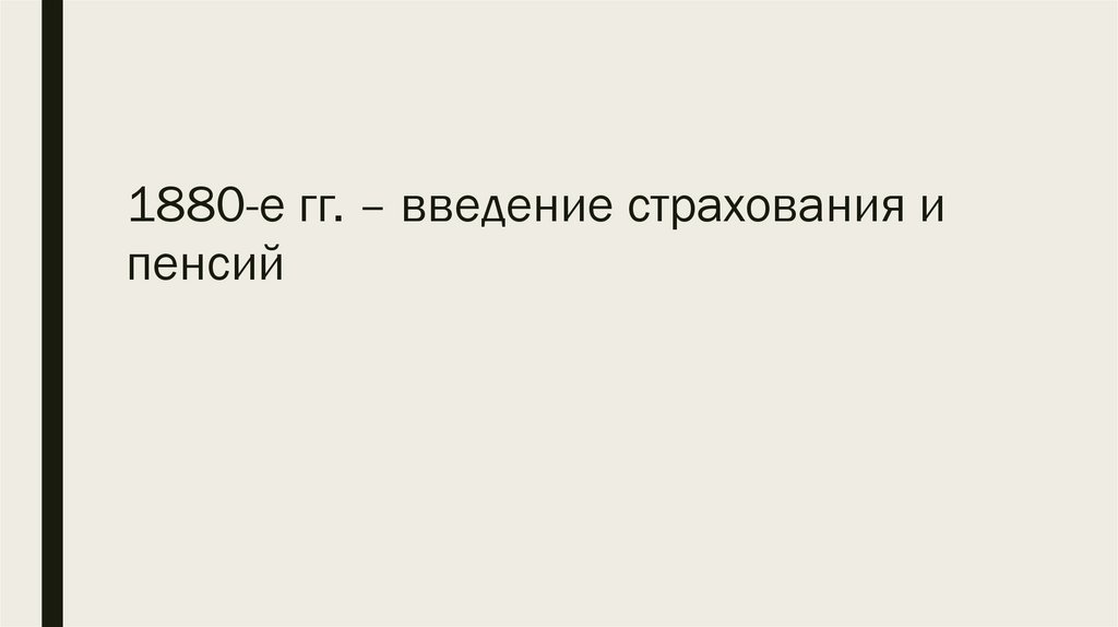 1880-е гг. – введение страхования ипенсий
