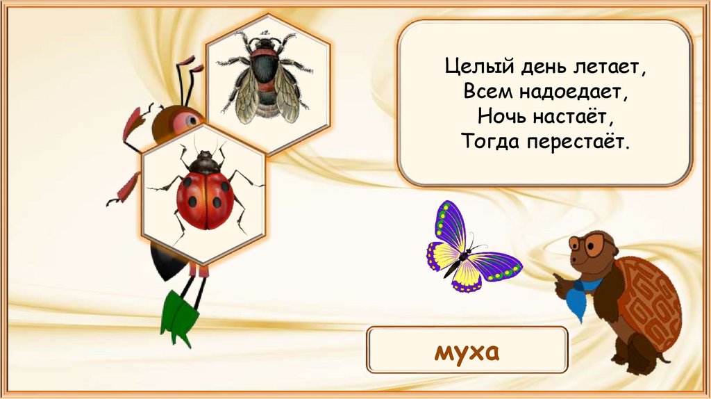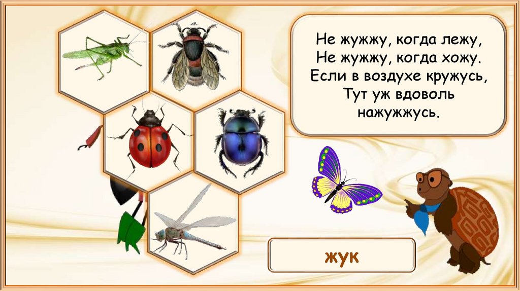 Не жужжу, когда лежу,Не жужжу, когда хожу.