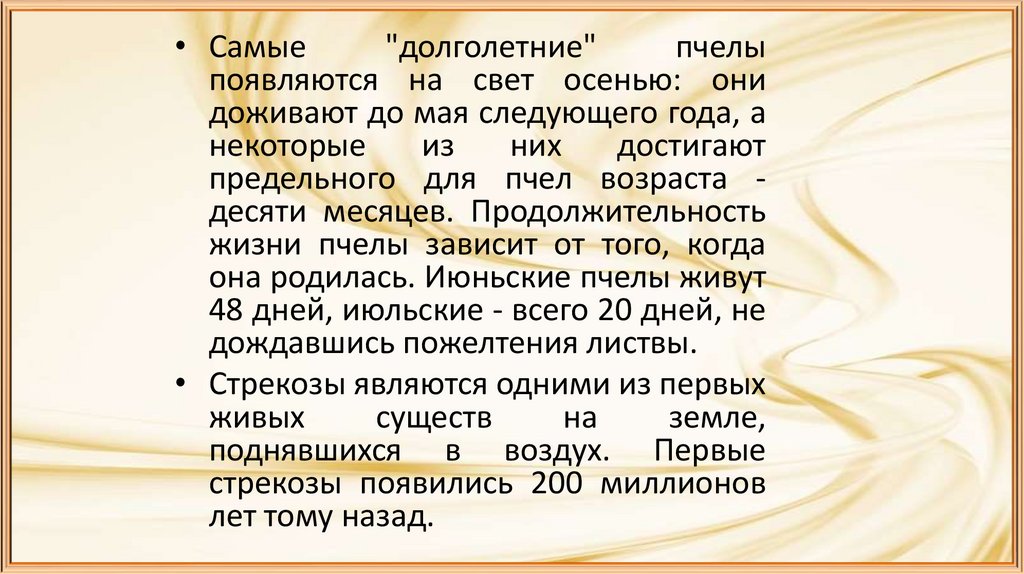 предельного для пчел возраста десяти месяцев. Продолжительность