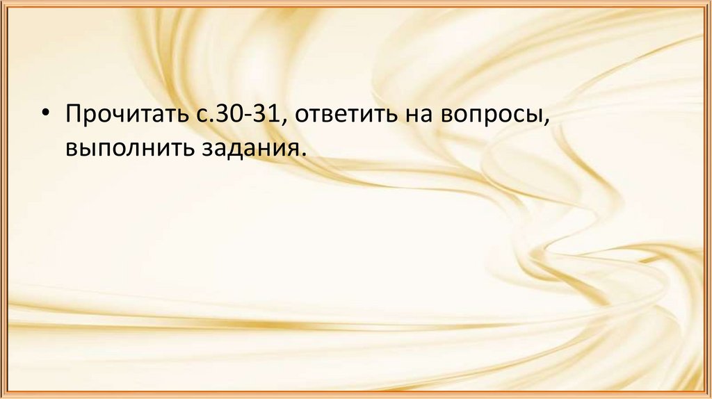 • Прочитать с.30-31, ответить на вопросы,выполнить задания.
