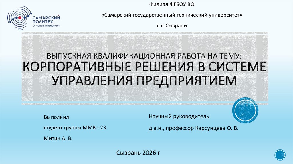 1. Выпускная квалификационная работа на тему: Корпоративные решения в системе управления предприятием