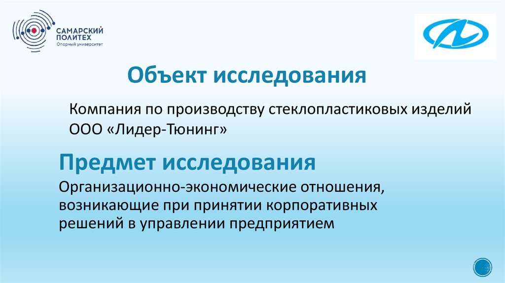 Объект исследованияКомпания по производству стеклопластиковых изделий