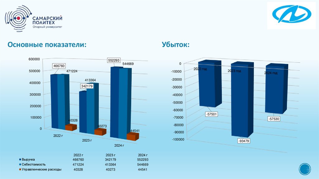 Основные показатели:Убыток: