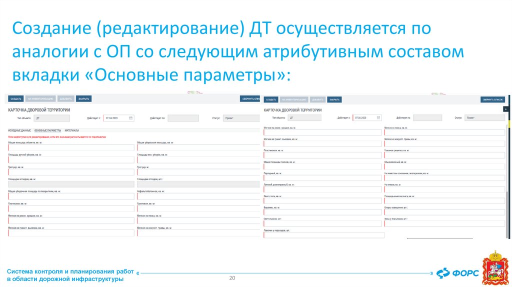 Заполнение карточки общественного пространстваСистема контроля и планирования работ