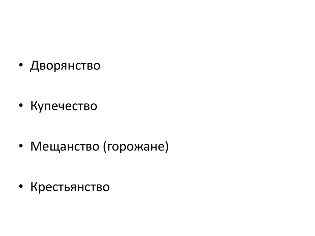 • На протяжении XIX в. сохранялось сословное деление общества.