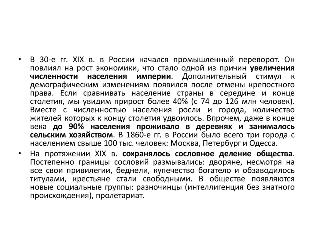• В 30-е гг. XIX в. в России начался промышленный переворот. Онповлиял на рост экономики, что стало одной из причин увеличения