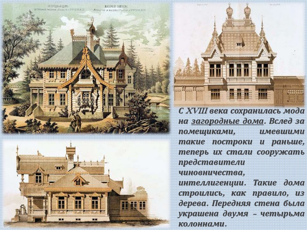 С XVIII века сохранилась модана загородные дома. Вслед за