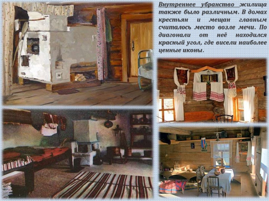 В зависимости от достатка хозяев дома были украшены резьбой,имели водосточные трубы, ставни и т.п.