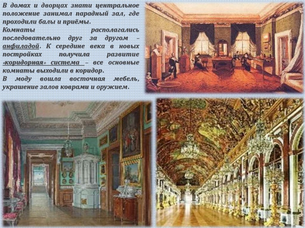 В домах и дворцах знати центральноеположение занимал парадный зал, где